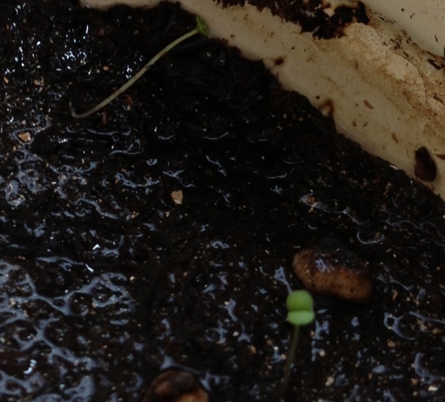朝顔とは別にミントはもう一ヶ月ほど経つにもかかわらず、まだまだこんなに小さく育ちが遅く、バジルの時とは全く違います。