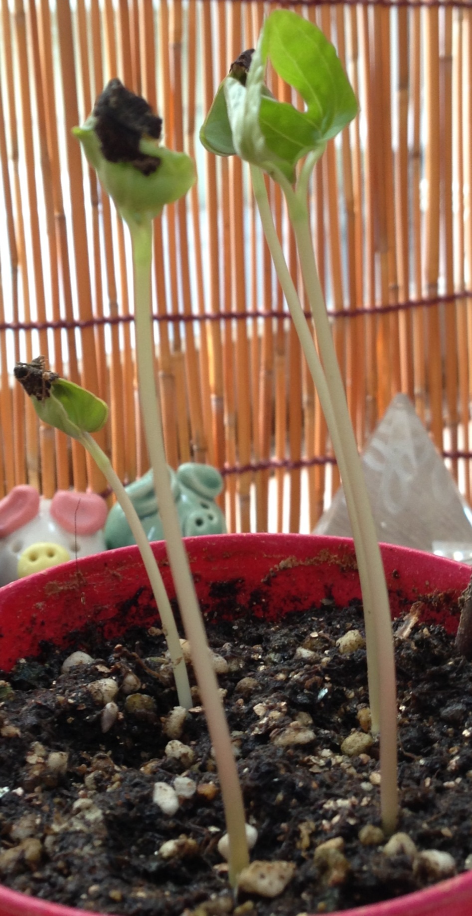 4日ほど前に2年ほど前に頂いた朝顔の種を植えたら、もう7つの種の内このように3つも芽が出て来て二回朝から感激でした☆*:.。. o(≧▽≦)o .。.:*☆